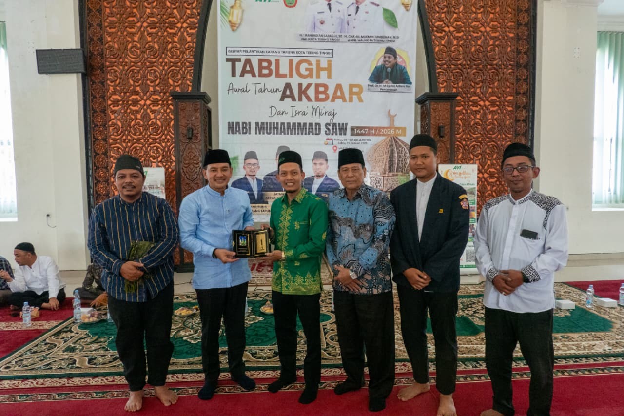 Wali Kota Tebing Tinggi, H. Iman Irdian Saragih, mendorong pengurus Karang Taruna Kota Tebing Tinggi untuk memperkuat kolaborasi dengan pemerintah daerah. Hal tersebut ditegaskan Wali Kota saat menghadiri Tabligh Akbar Karang Taruna dalam rangka Peringatan Isra Miraj 1447 Hijriah di Masjid Agung, Jalan K.L. Yos Sudarso, Sabtu (31/01/2026).